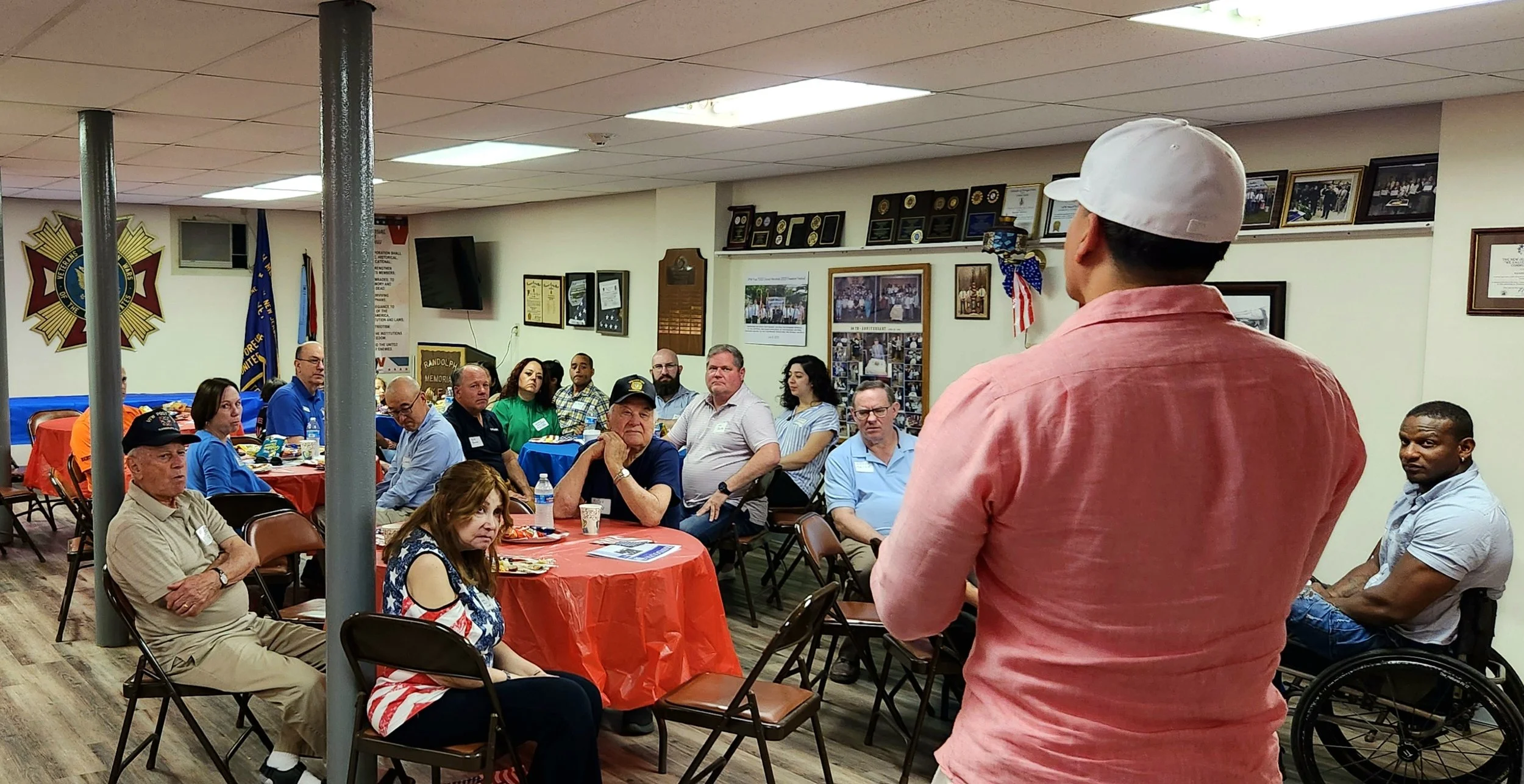 We are pleased to report that our 2025 "Coffee with a Cop" event was well attended, with eight of Randolph's finest joining us and Mayor Joe Hathaway and Town council members Lou Nisivoccia, Chris Carey, Mark Forstenhausler and Denise Thornton. The event was hosted by VFW Post 7333 Commander Angel Soto, Quartermaster Daniel Gaestel, Adjutant Brian Capo, Paul Monacelli, Richard Collari,